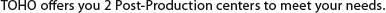 TOHO STUDIOS' Post-Production Center provides you the world's best quality acoustical environment as well as smooth and efficient network system to help enhance your film quality.