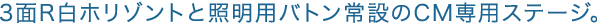 3面R白ホリゾント常設し、スチール用スタジオも併設しております。