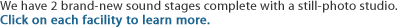 Stages 11 & 12 are multi-functional sound stages for use in filming commercials and are equipped with a cyclorama that is 9m tall and 20m wide. There is a still photo studio situated between stages.