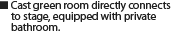 Efficient water drainage to allow heavy usage of water on stage. The stage has 2 longitudinal drain pipes with 4 outlets each 100mm in size (allows to drain 700 litres of water per minute)