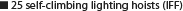 Lighting hoists: 25 (IFF self-climbing hoists) / Electric Capacity: 400kw / Air conditioning: Cooler and Heater /