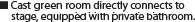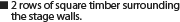 Square timber: 2 on stage wall, catwalk opening and handrail / Wireless and Wired internet access