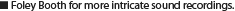 The Foley stage has a whole assortment of “sound-creating” materials to meet the needs of the Foley artists, not to mention the high sound insulation level of NC rate 10. The door at the back of the room gives way to the “Foley Booth” for those smaller and more intense sound recording. The NC rating in the Foley Booth is even less than NC 10.| 4.4 | 86 | 4 x 2.3 |
