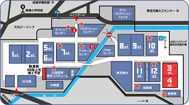 同時に完成しますオフィスセンターでは、東宝(株)スタジオ経営部・TOHOスタジオ(株)・(株)東宝映画・(株)東宝映像美術が新たな事務所を構えます。お客様の声にいつでも耳を傾けることのできるポジションです。お気軽にお立ち寄りください。