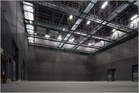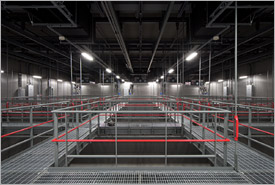 高い天井と細かく配置されたキャットウォーク。 |